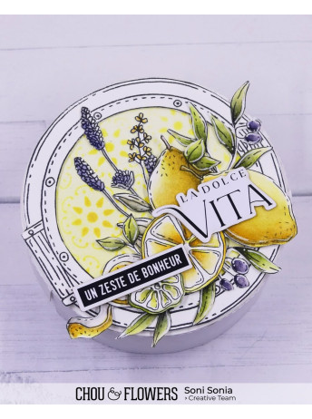 Planche de 2 tampons transparent d'un cadre et d'une branche de citronnier