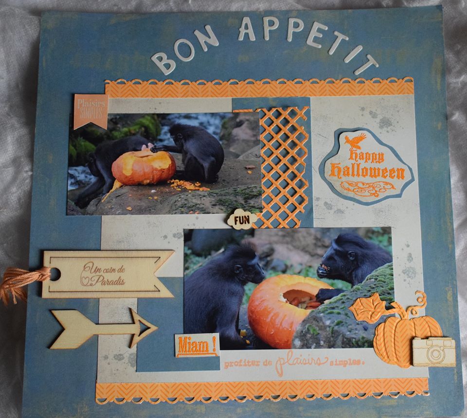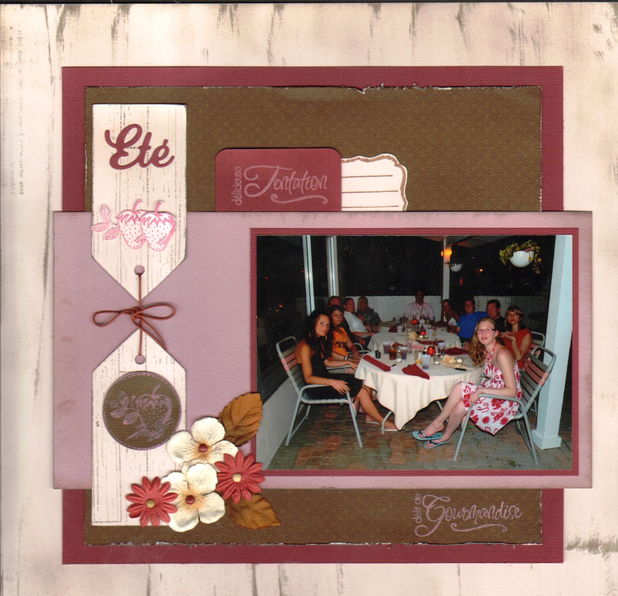 Pas possible d’oublier la gastronomie dans notre scrap donc j’aimerai voir un aliment sur votre page : ce que vous voulez une photo – un embellissement (fruit – légume – gâteau) – un tampon ayant un rapport avec la cuisine Faites preuve d’imagination