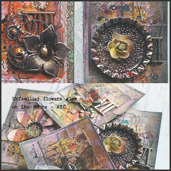 - des ATC (ATC = Artist Trading Card) : créer des ATC est parfait pour expérimenter et s’essayer à différents mediums. Ils sont de petites tailles mais offrent d’énormes possibilités en ce qui concernent les techniques. Dans cet atelier, vous jouerez avec les produits Finnabair et créerez un bel ensemble de cartes avec beaucoup de couches et de détails “mixed media”.