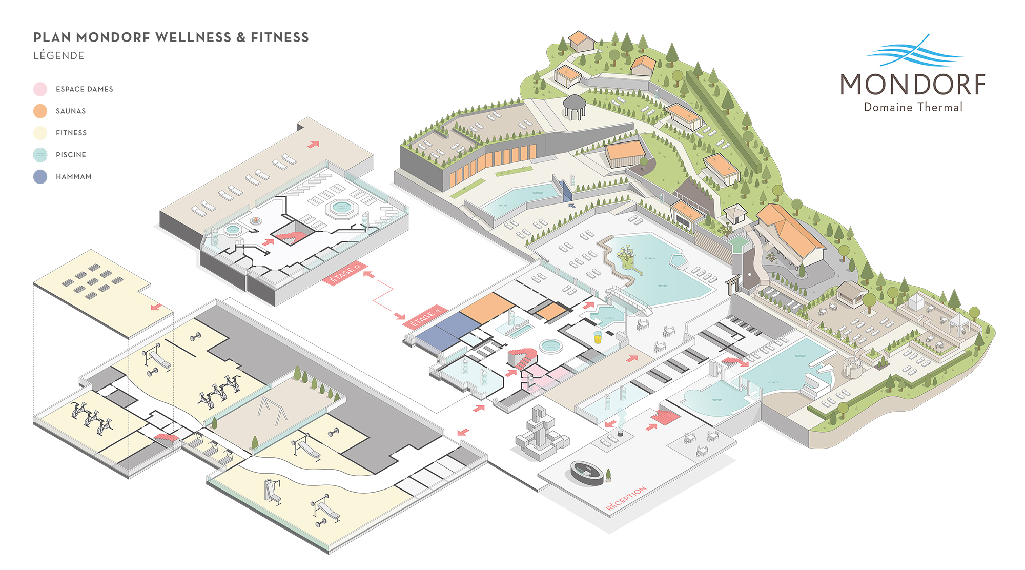 Vous pourrez profiter des infrastructures : piscine thermale – 12 sauna – 3 hammam – jaccuzzi