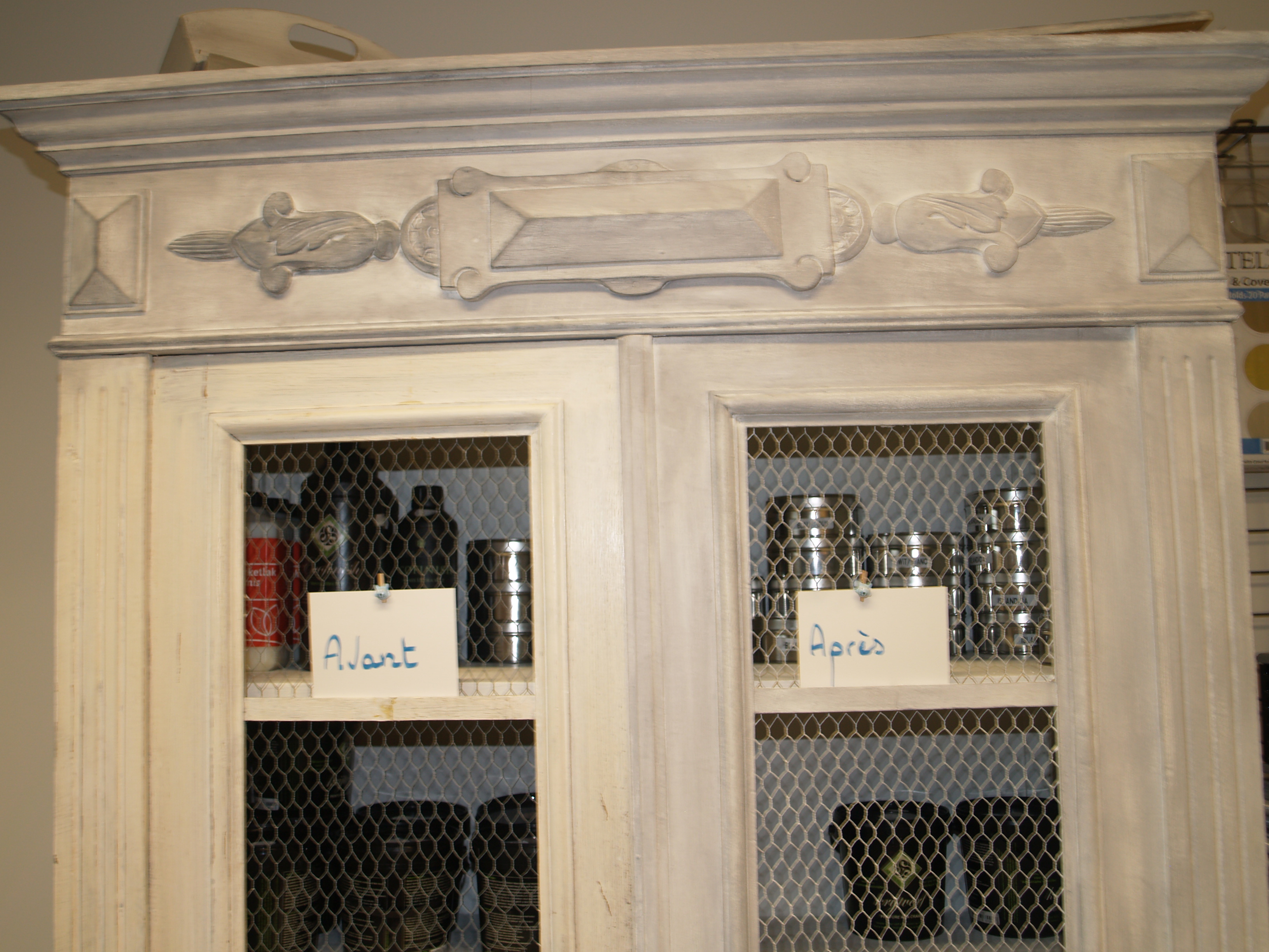 vous mettez la cire grise sur tous le meuble et puis la cire blanche?vous appliquez la cire avec un chiffon ou autre chose?
