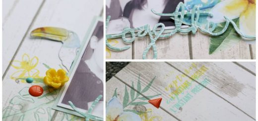 J’ai utilisé le grand gabarit Voyage pour le contour extérieur de mes photos entières et j’ai découpé une photo avec la plus grande forme du même dessin. Grâce au petit contour de 4 mm, c’est facile d’emboiter la forme dans d’autres photos.