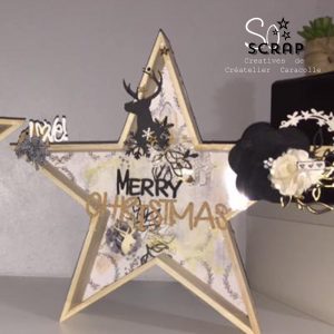 J’ai mis du transparent sur le devant de l étoile et je mets “Merry Christmas “dessus