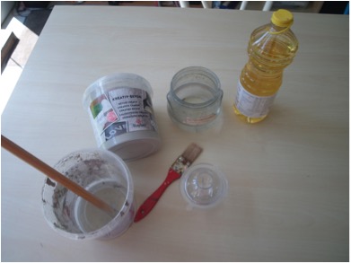 - support bougie – support en bois ou en carton comme récipient (si bois ou béton recouvrir l’intérieur de collant adhésif)