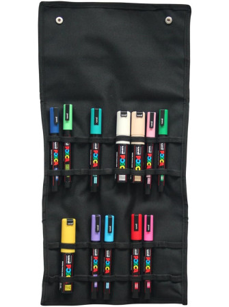 Trousse en tissu avec pressions pouvant contenir 20 marqueurs Posca