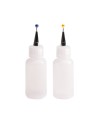2 Flacons vides en pastique munis d'un embout métallique fin 0.7 mm avec bouchon de fermeture
