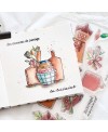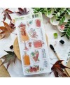 Planche de 11 tampons transparent sur un tablier et des phrases en français sur le thème de l'automne