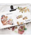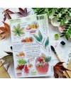 Planche de 21 tampons transparent de dessins chataignes, de champignons et de mots sur le thème des légumes de l'automne