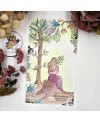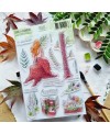 Planche de 15 tampons transparent sur le thème de la balade en forêt avec une fille sur un tronc d'arbre