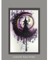 1 tampon acrylique transparent avec une sorcière munie d'une lanterne