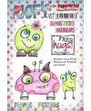 Planche de 9 tampons caoutchouc de petits monstres et de mots