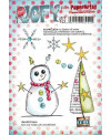 Planche de 8 tampons caoutchouc d'un sapin - d'un bonhomme de neige et de flocons de neige