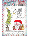 Planche de 7 tampons caoutchouc d'un sapin - d'un Père Noël et de frises